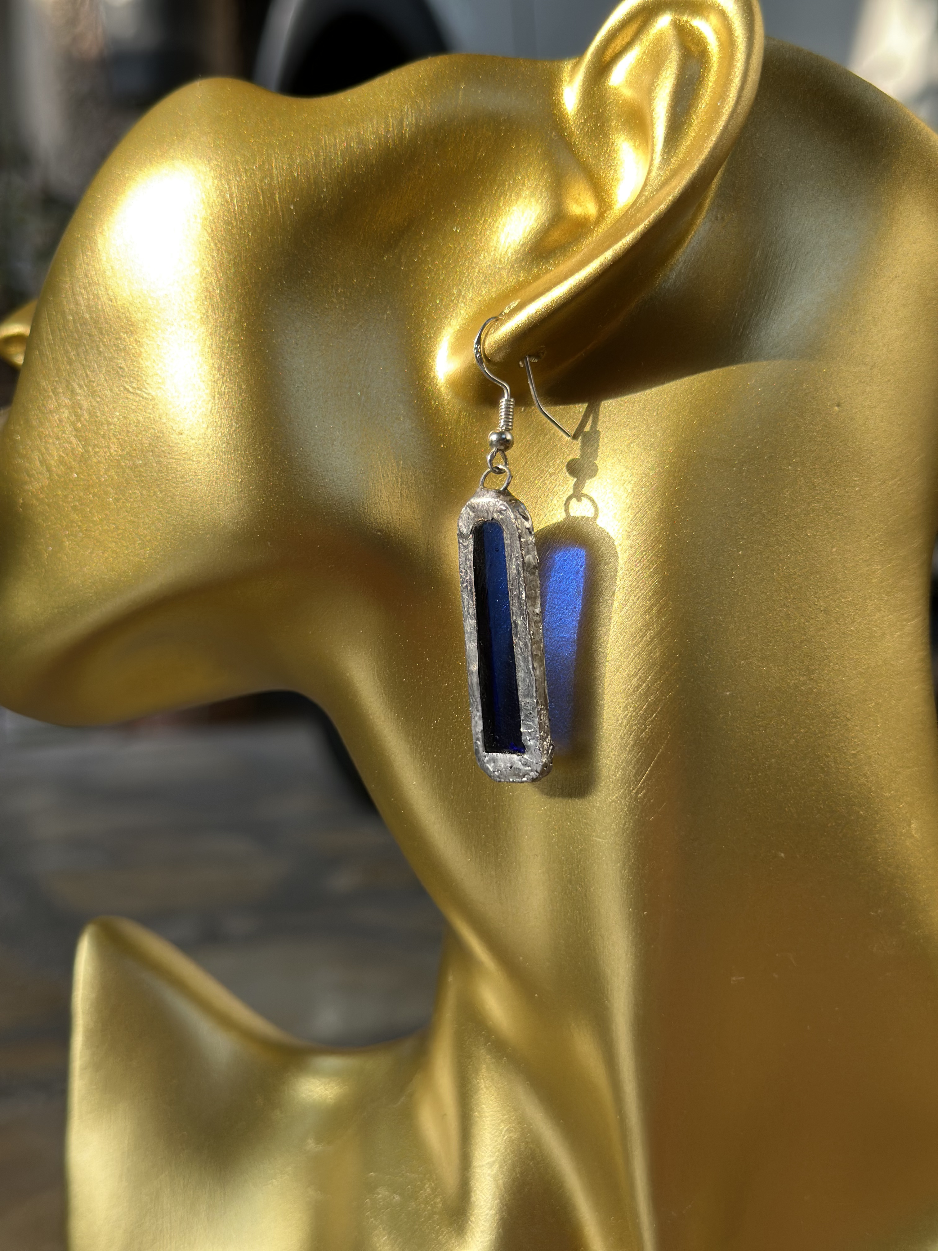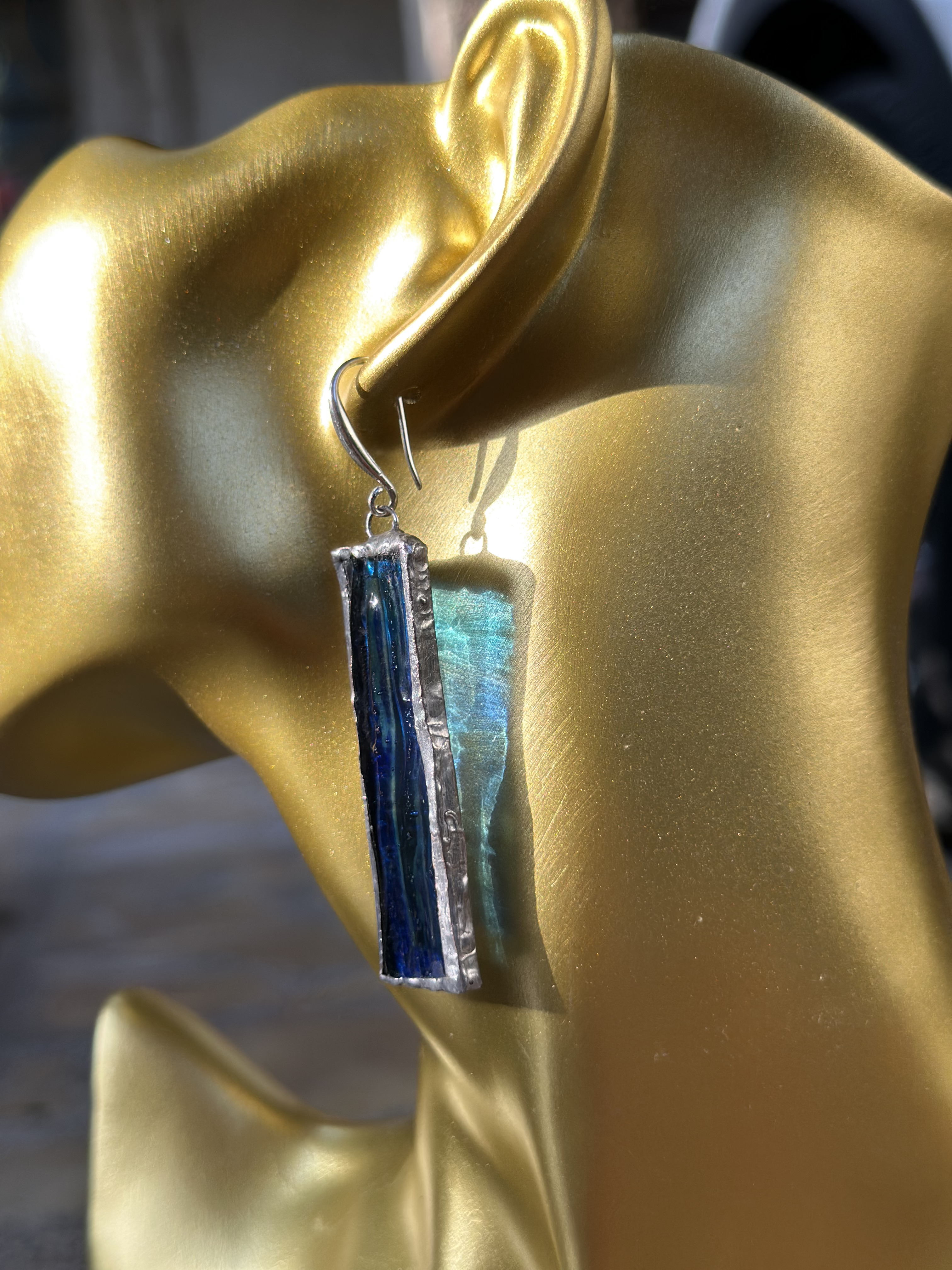 "انسيابية الماء.. وصلابة الصخر." أقراط متدلية بتصميم فريد يشبه الكريستال الخام، تمزج بين تدرجات الأزرق العميق والتركوازي الصافي. شكلها الطولي يمنح الوجه تحديداً أنيقاً ويضيف لمسة من الثقة لكل من ترتديها .