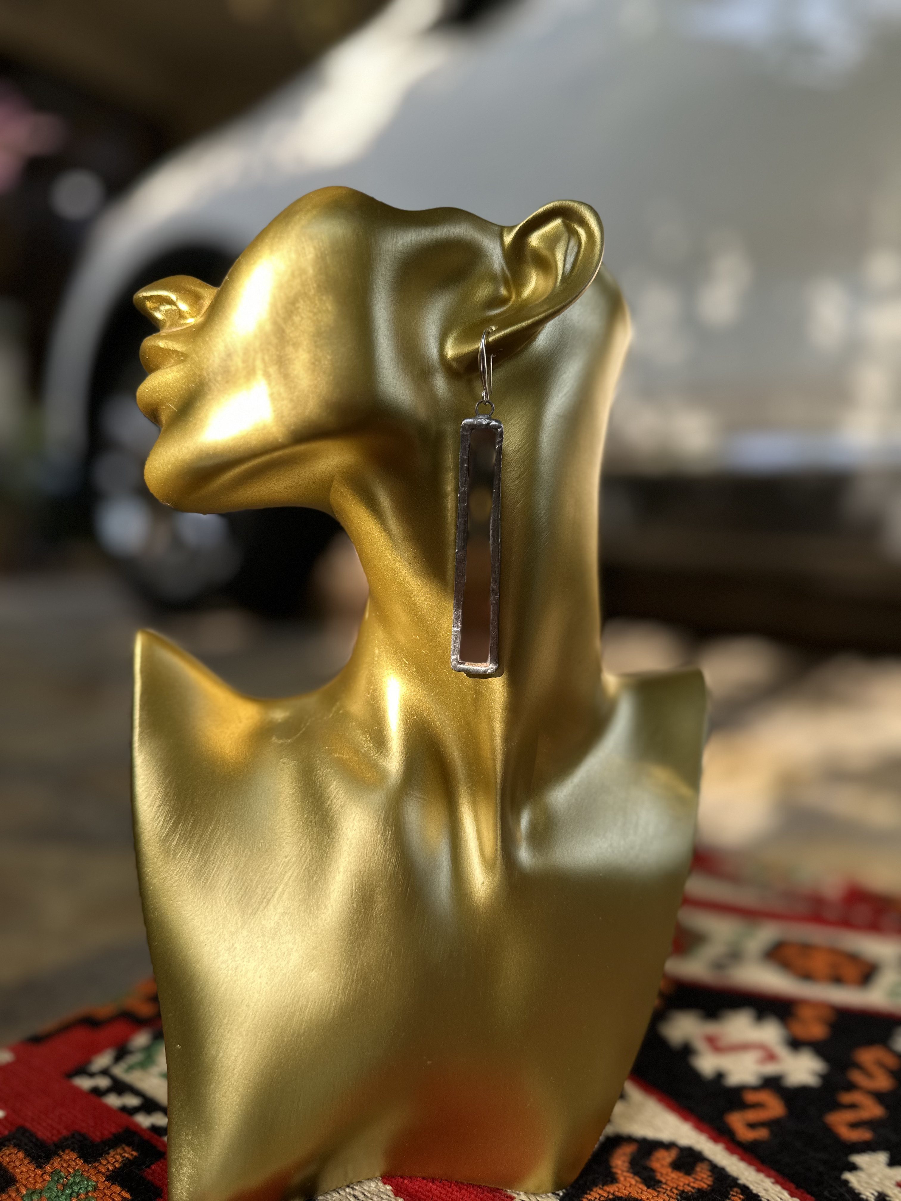 قطعة فنية فريدة مصممة يدوياً باستخدام "مرايا" حقيقية مؤطرة بشغل يدوي متقن ... التصميم الطولي يمنحكِ رقبة أكثر رشاقة وإطلالة لا تُنسى... يعطي شعور "الثقة والجرأة": هذه التراجي ليست مجرد زينة، بل هي "بيان" تعطي شعوراً للمرأة بأنها مركز الانتباه . أطار الفضي ( لون ثابت ) لا يبهت .. خفيفه الوزن