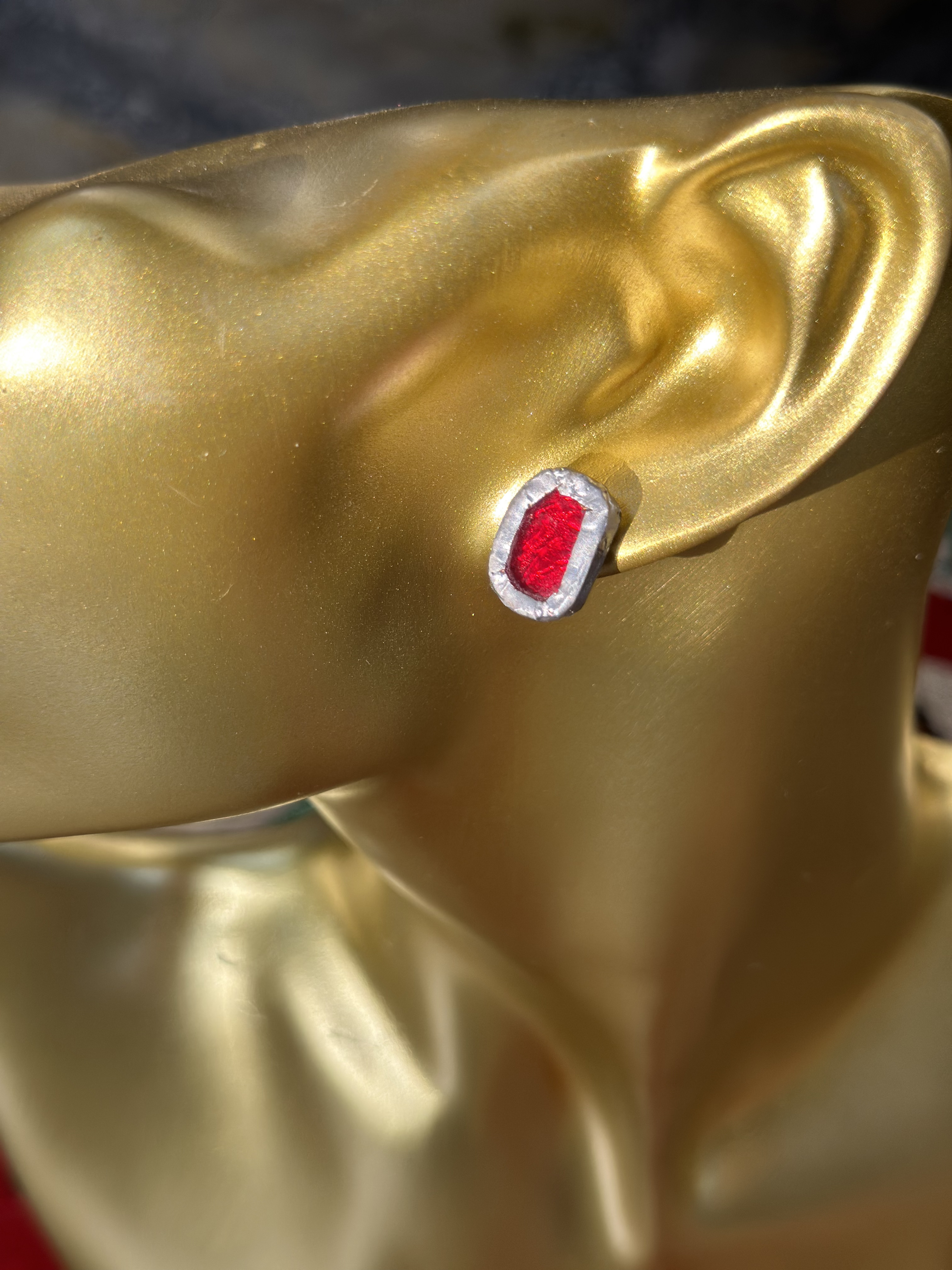 سيت ياقوت الروح ...زجاج بلون الاحمر عميق ... تراجي ميني (Mini Earrings)+ قلادة ميني , يعطيك الشعور بالفخامة الملكيه لكأنك ترتدين قطعة "موروثة" أثرية ... أطار الفضي ( لون ثابت ) لا يبهت .. خفيفه الوزن