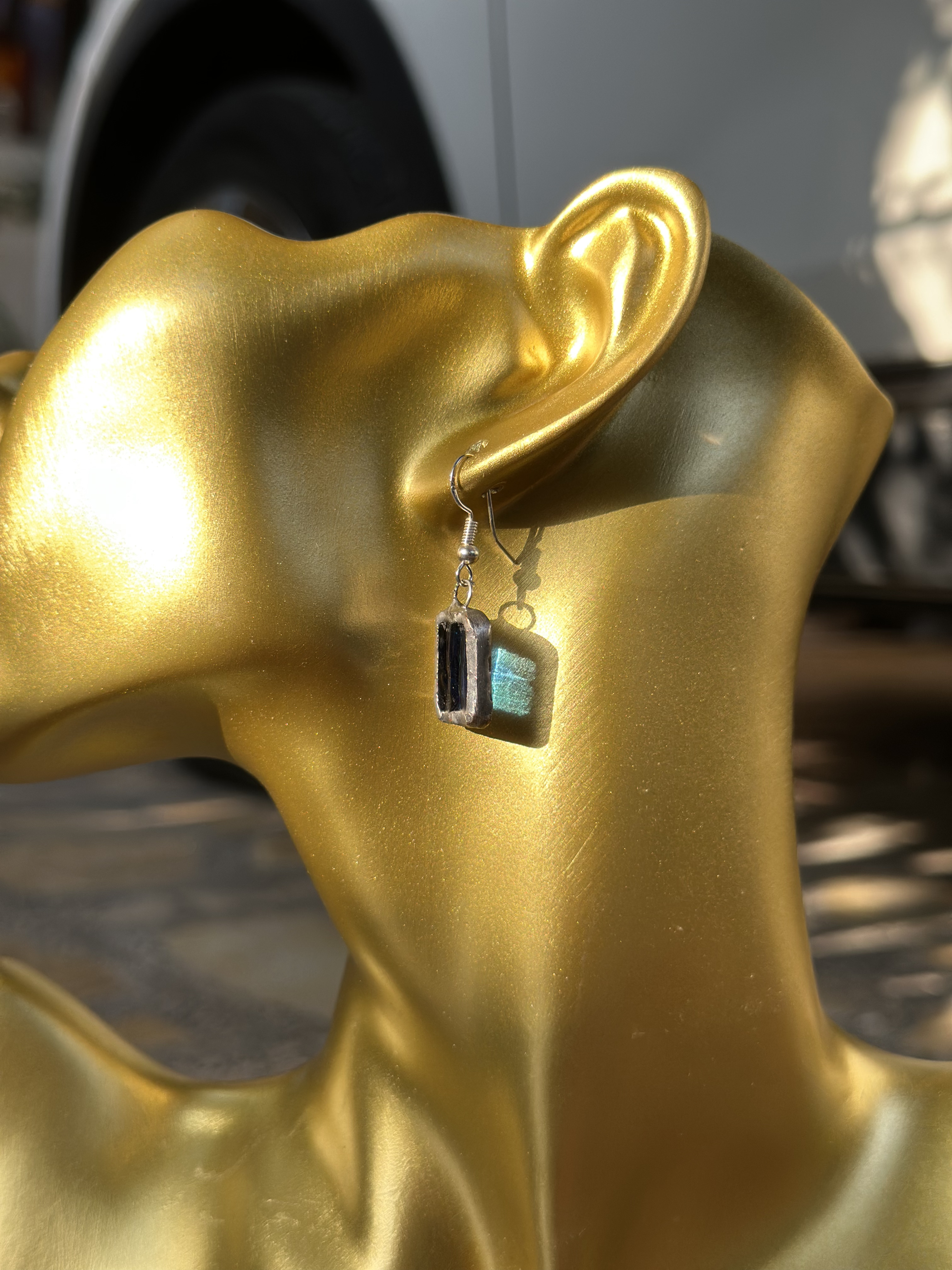 "أناقة ملكية بلون السماء والبحار.." أقراط مشغولة يدوياً بلون أزرق ملكي (Royal Blue) ساحر. التصميم الصغير المركز يخلي اللون يبرز بقوة وية لمعة الفضة اليدوية اللي تحيط بالقطعة مثل بريق النجوم .
